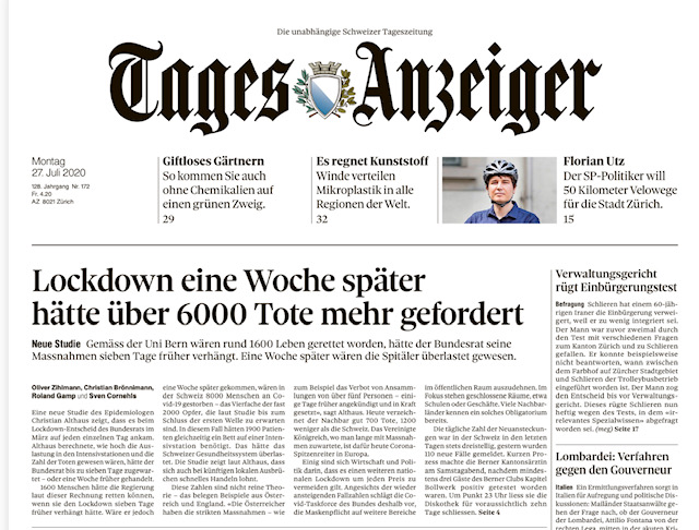 Wie verwirrend ist das denn?! Die Headline auf der gestrigen Titelseite des Tages-Anzeigers stellt die Anordnungen des Bundesrates in ein gutes Licht: HÄTTE der BR später gehandelt, WÄREN 6000 Menschen mehr gestorben.